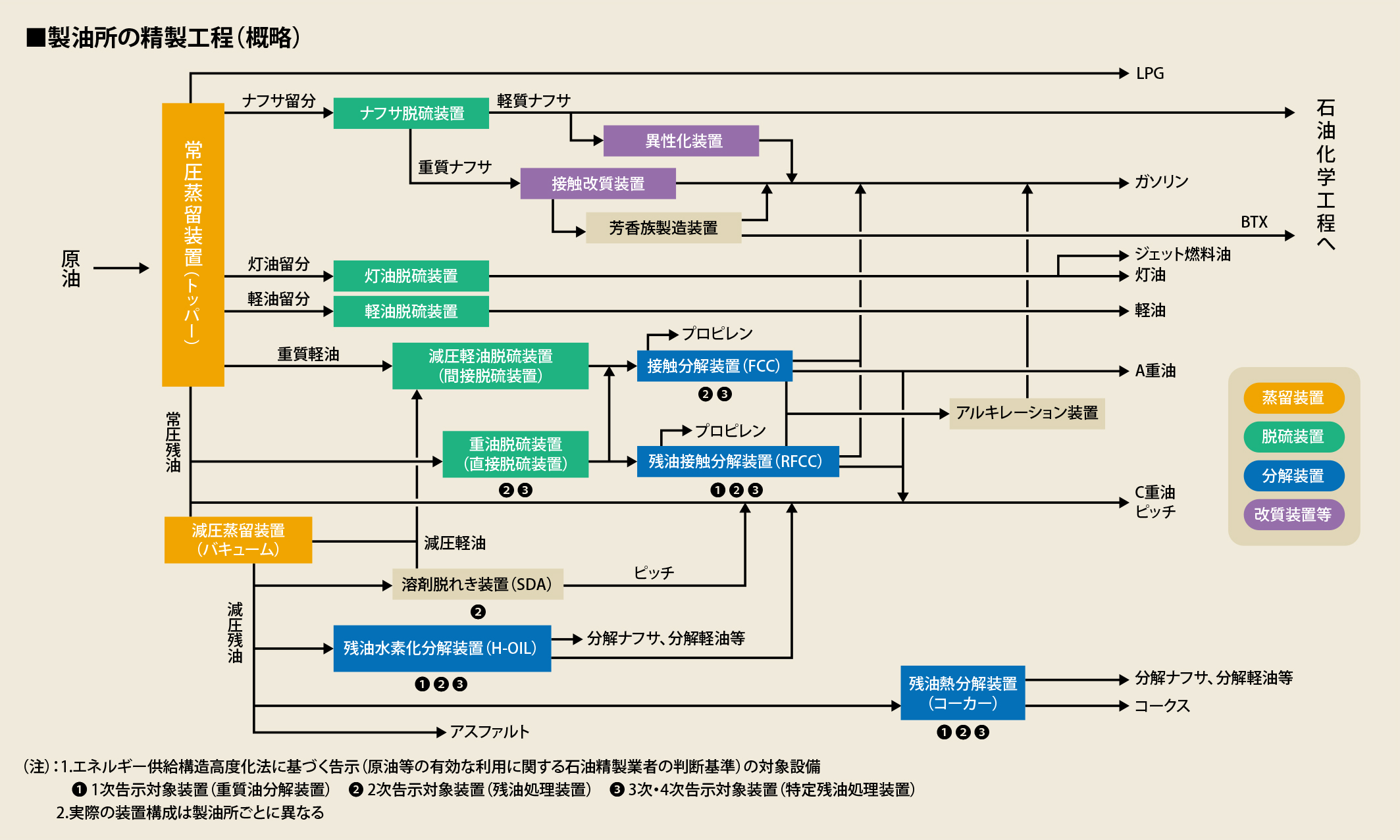 その後の脱硫、分解、改質などの工程は二次処理とも言います。