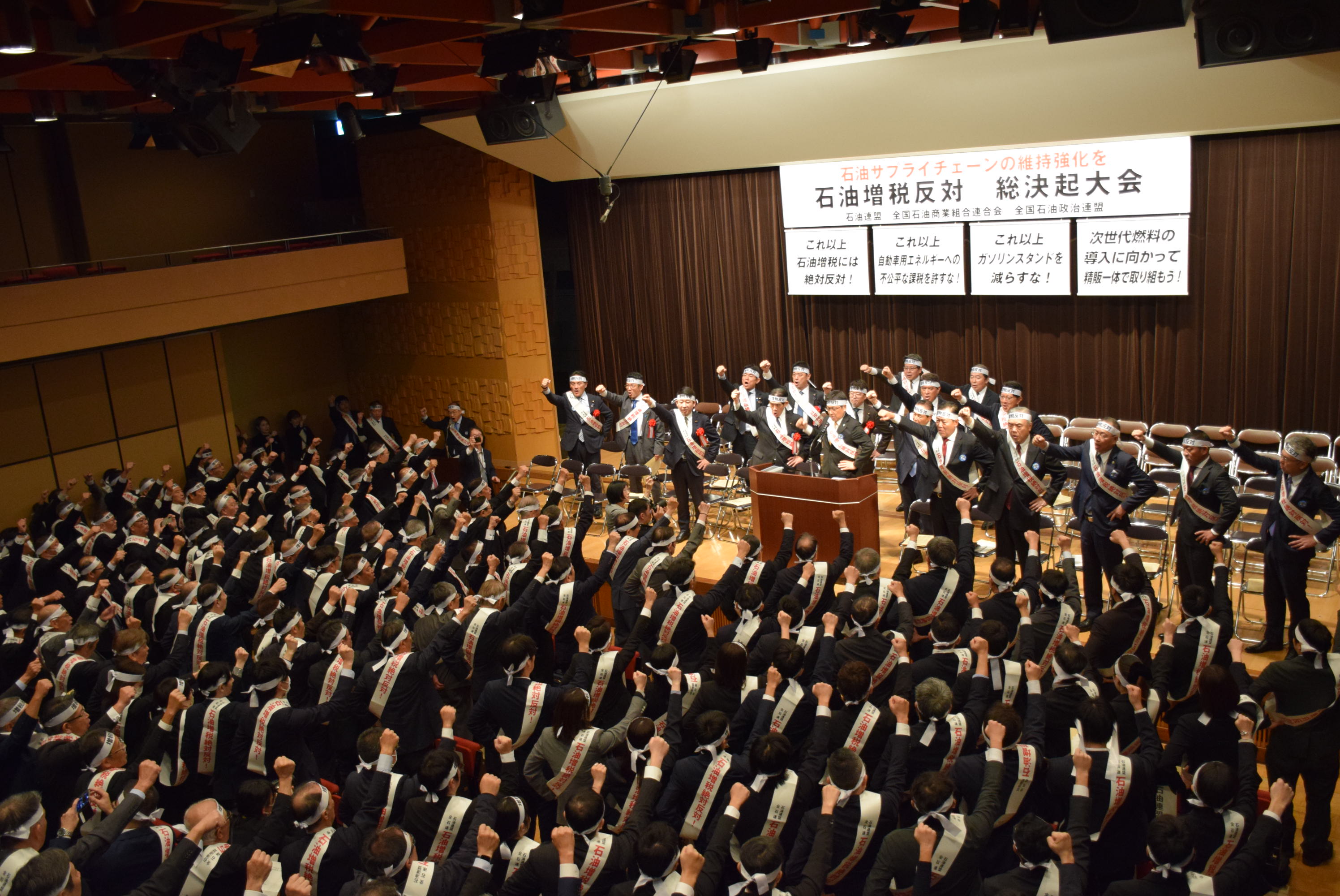 石油連盟と全国石油商業組合連合会・全国石油政治連盟は、本日午前、星陵会館(東京)にて、国会議員63名を含む関係者約360名の参加のもと、消費者の負担軽減と石油サプライチェーンの維持強化を目指して石油諸税の軽減等を訴える『総決起大会』を開催しました。